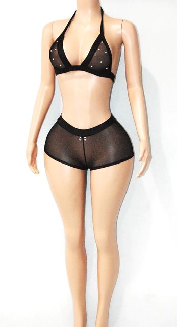 Mesh short set w/stones